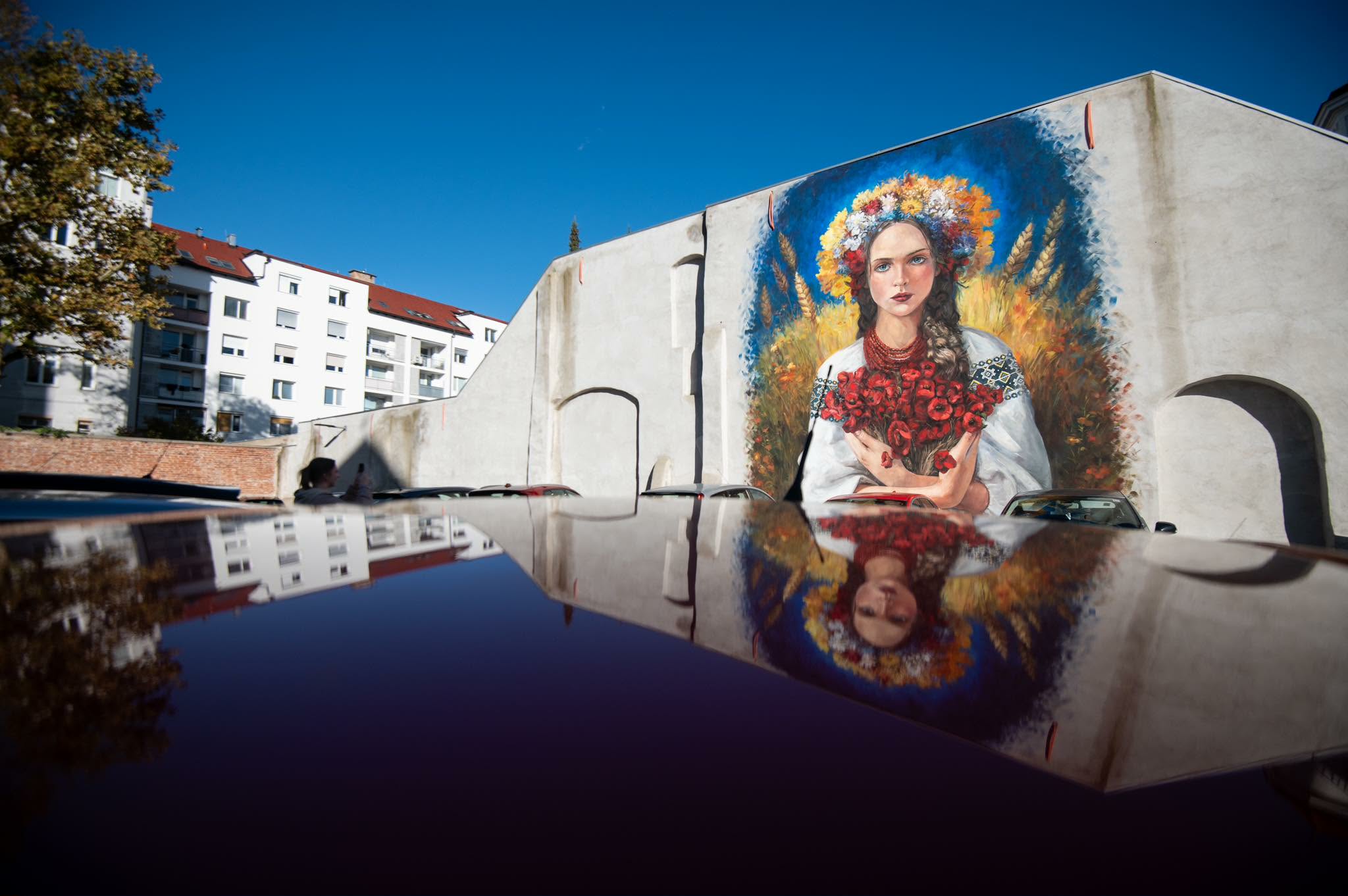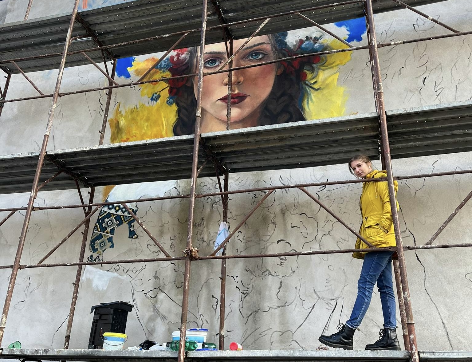 Na muralu je upodobljena mlada, samozavestna deklica, ki pooseblja Ukrajino. Oblečena je v tradicionalno ukrajinsko srajco, na glavi pa ima venec iz živih cvetov. Te simbolične barve nas spominjajo na bogato kulturo in zgodovino Ukrajine.