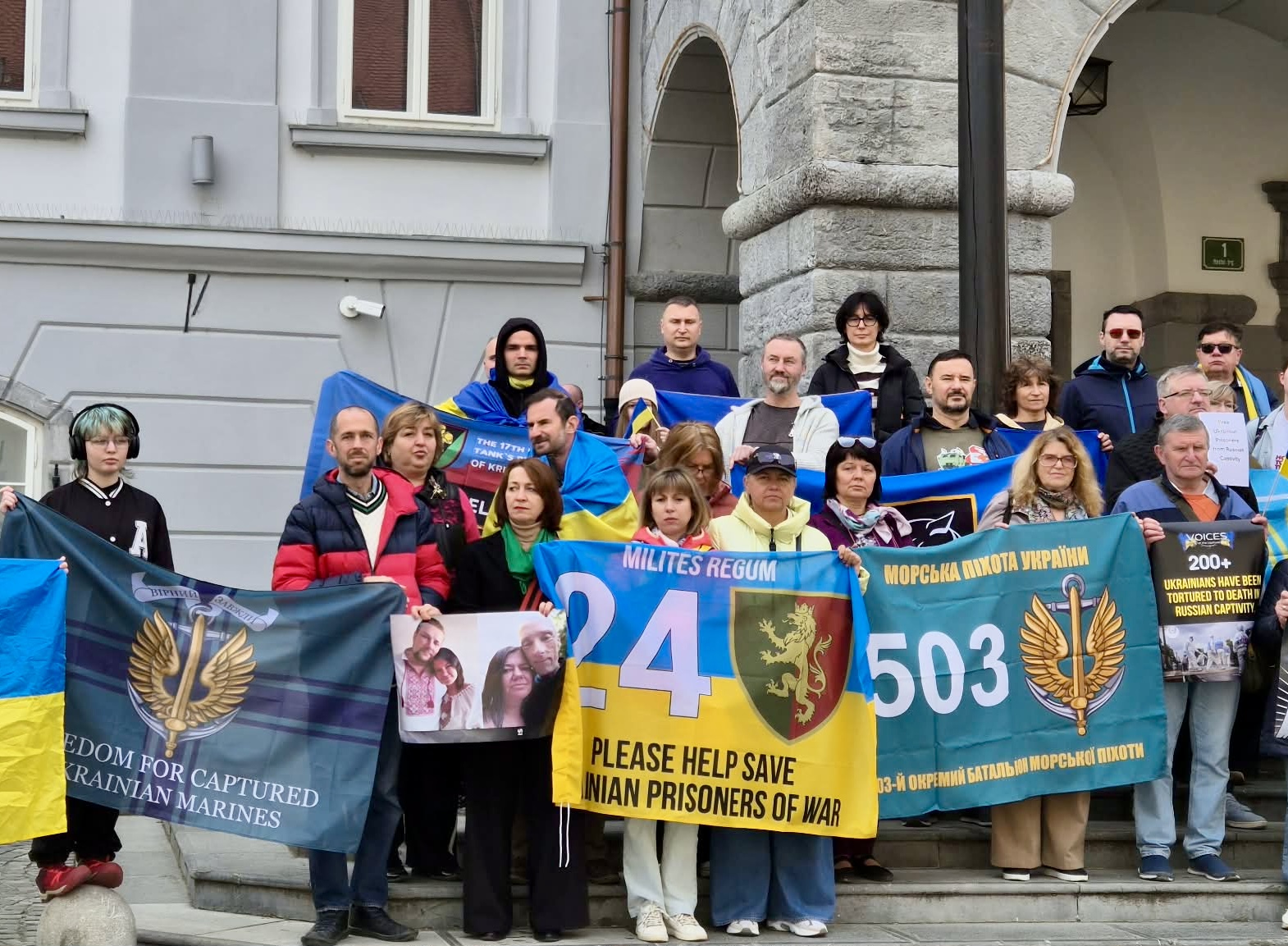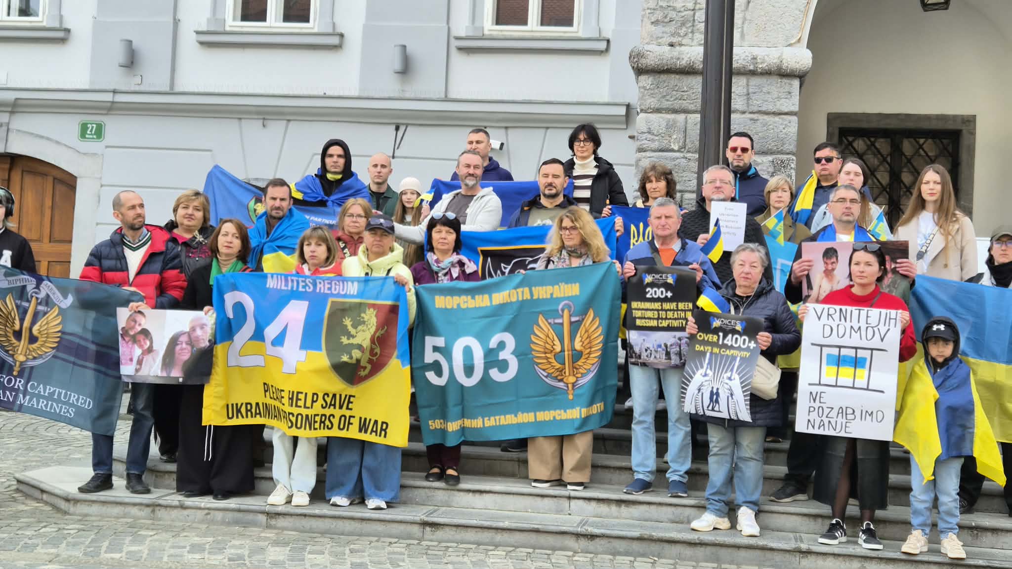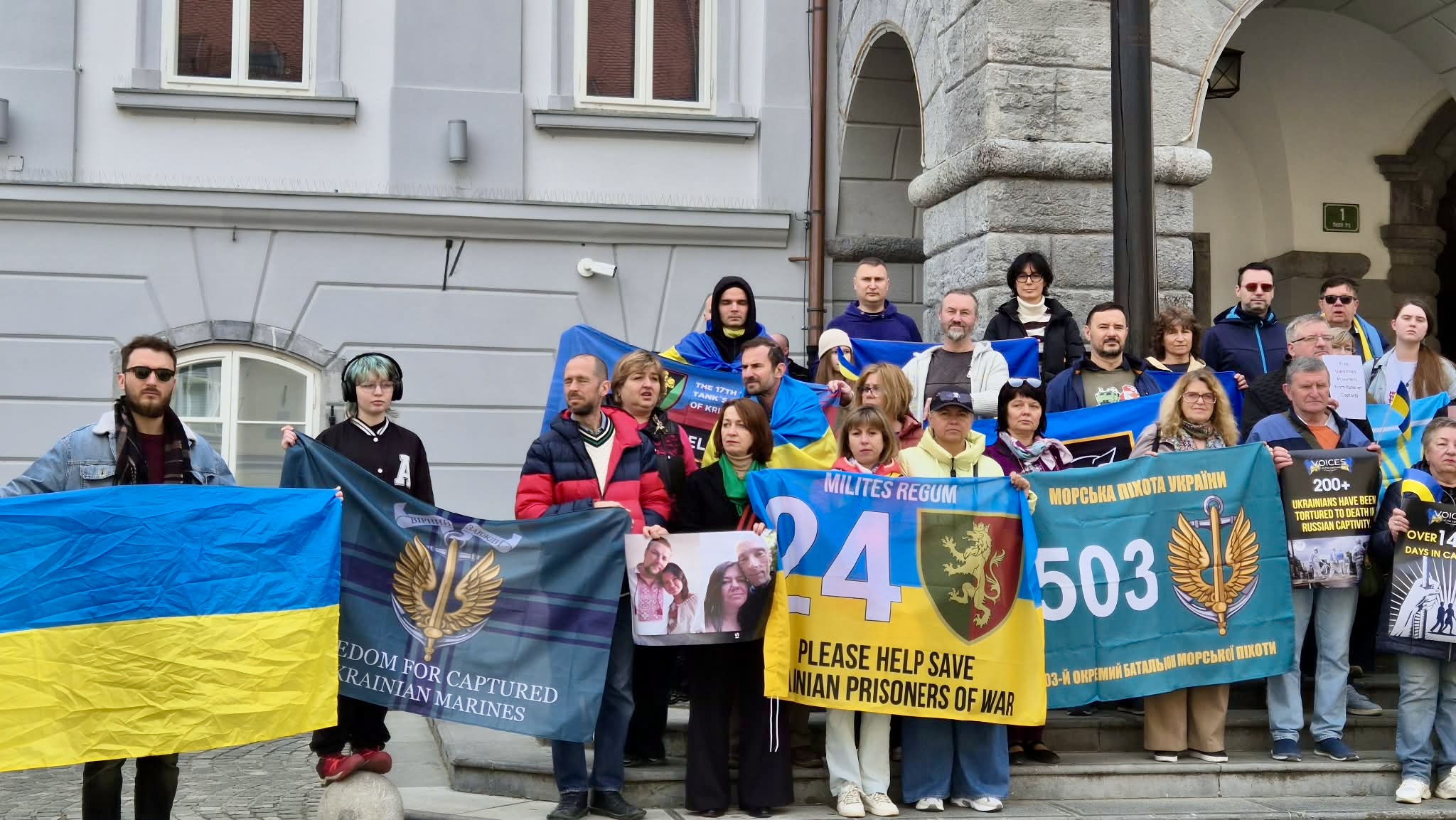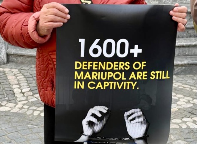 11 квітня в Любляні товариство Разом та українська громада в Словенії провели акцію на підтримку всіх українських військовополонених, зокрема захисників Маріуполя.